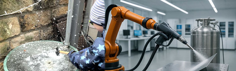 Strahltechnikentwicklung mit Wassereis-Strahlmittel